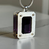 Emerald sterling silver strata pendant boasting a 21mmx27mm Brazilian amethyst hung from a sterling silver snake chain.