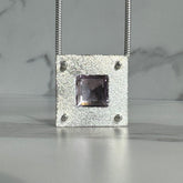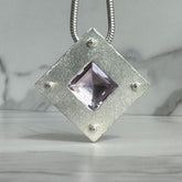 Sterling silver square strata pendant with a beautiful 16x16 mm square cape amethyst on a sterling silver snake chain.