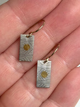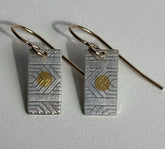Keum-boo is a Korean technique for applying 24k gold to silver. This particular set is etched first with a beautiful geometric texture, then the 24k gold dot is applied.