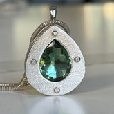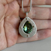 Pear sterling silver strata pendant boasting a 16mmx20mm Prasiolite hung from a sterling silver snake chain.