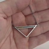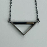 This pendant is completely hand fabricated from sterling silver with careful attention to detail and signed by Dana. It is oxidized to give a nice contrast between the silver and the solo 18k gold wire that slides back and forth based on the wearers movement. The artist considers her pieces to be sophisticated pieces of playful art jewelry to help with those fidgety fingers and possibly even calm anxiety.